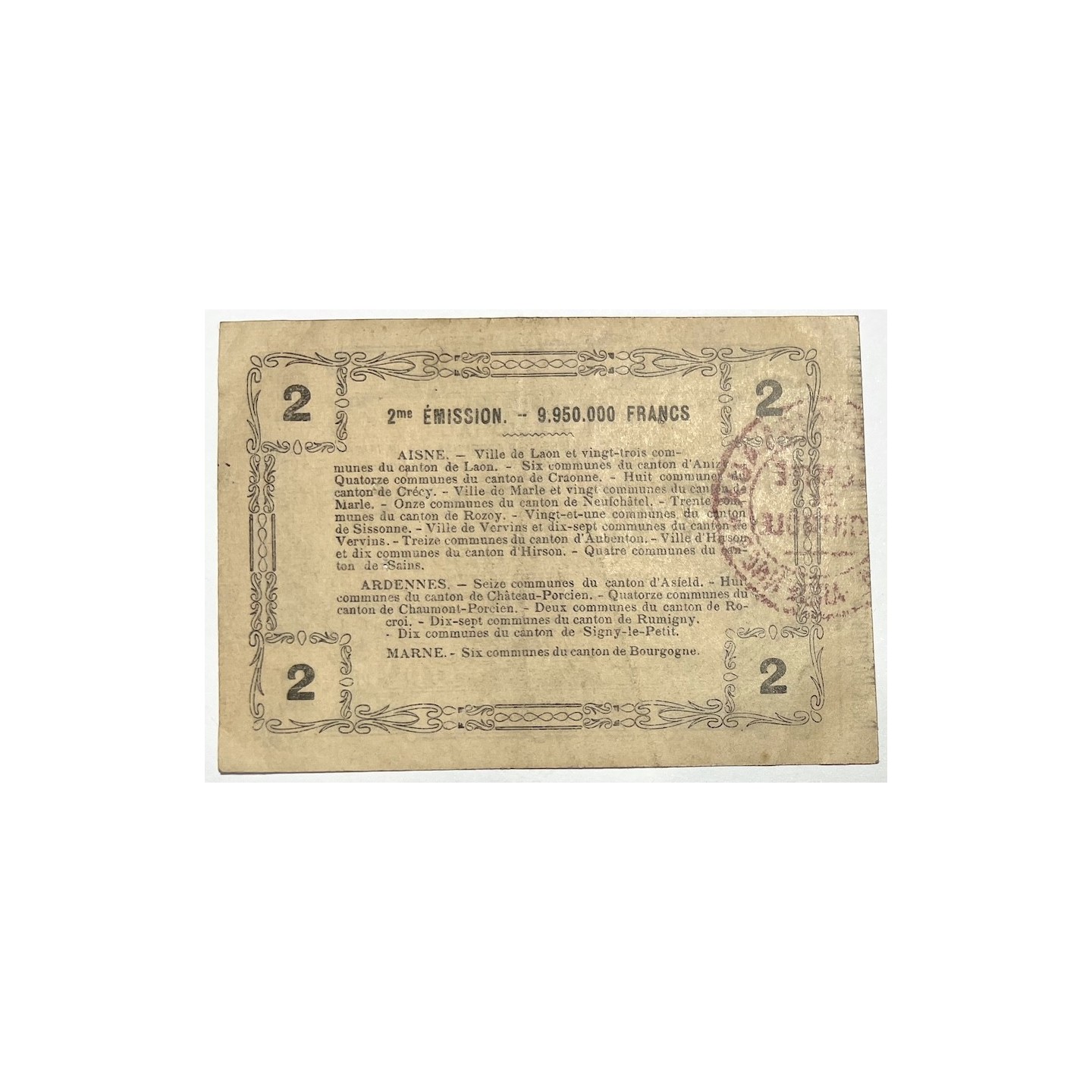 Rupture de stock Aperçu rapide 2 Francs, Syndicat Ardennais de ravitaillement pour la région de Sedan, 1917 35,00 € afficher les détails