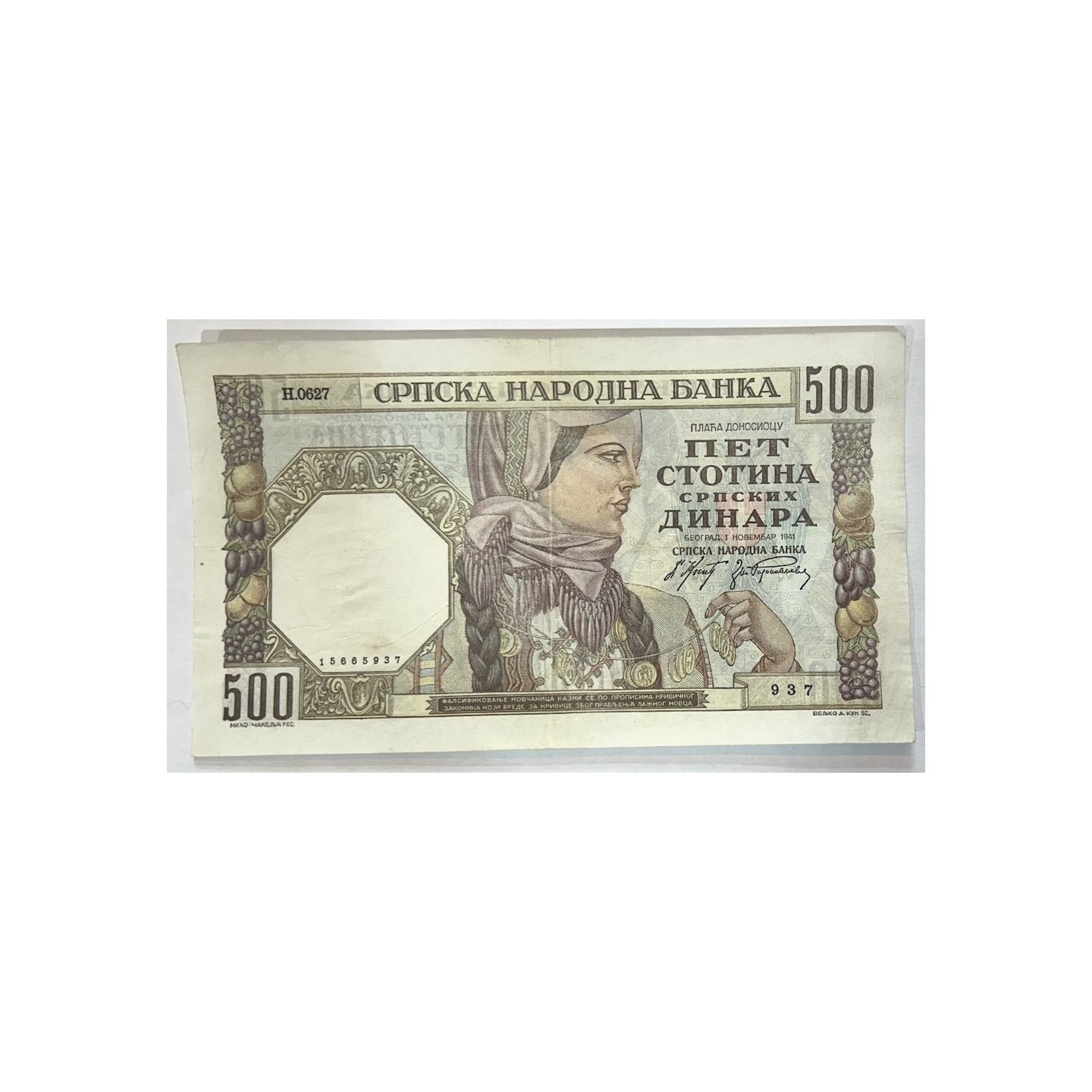 Serbie - 500 Dinara 1941